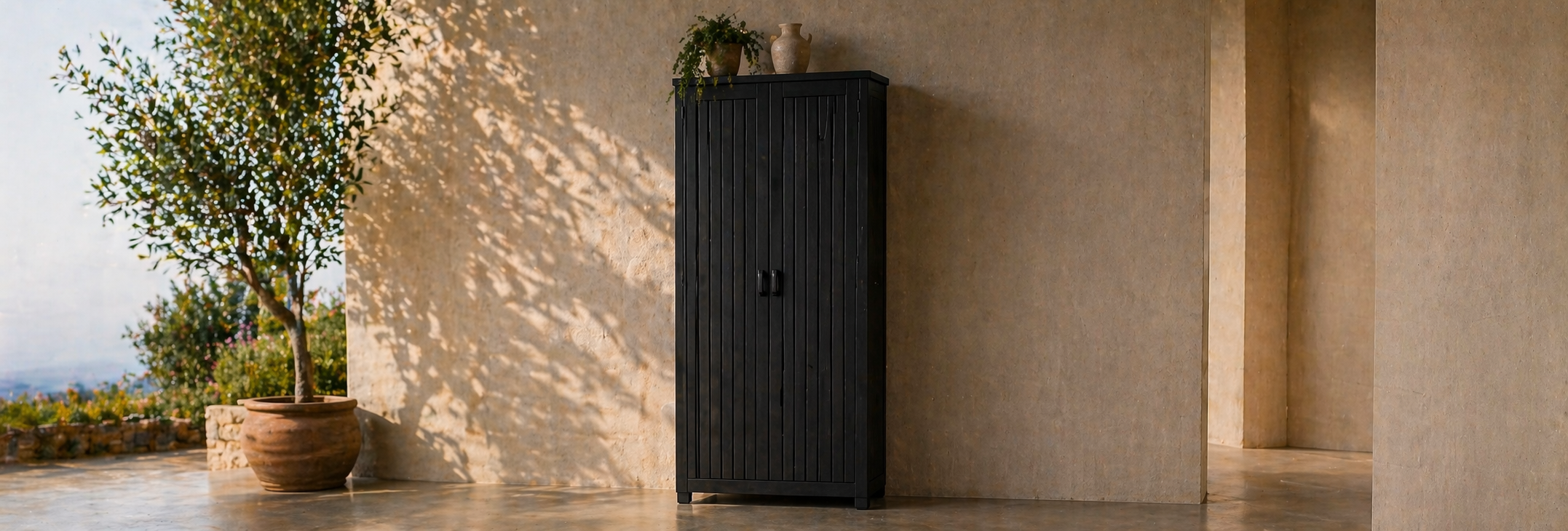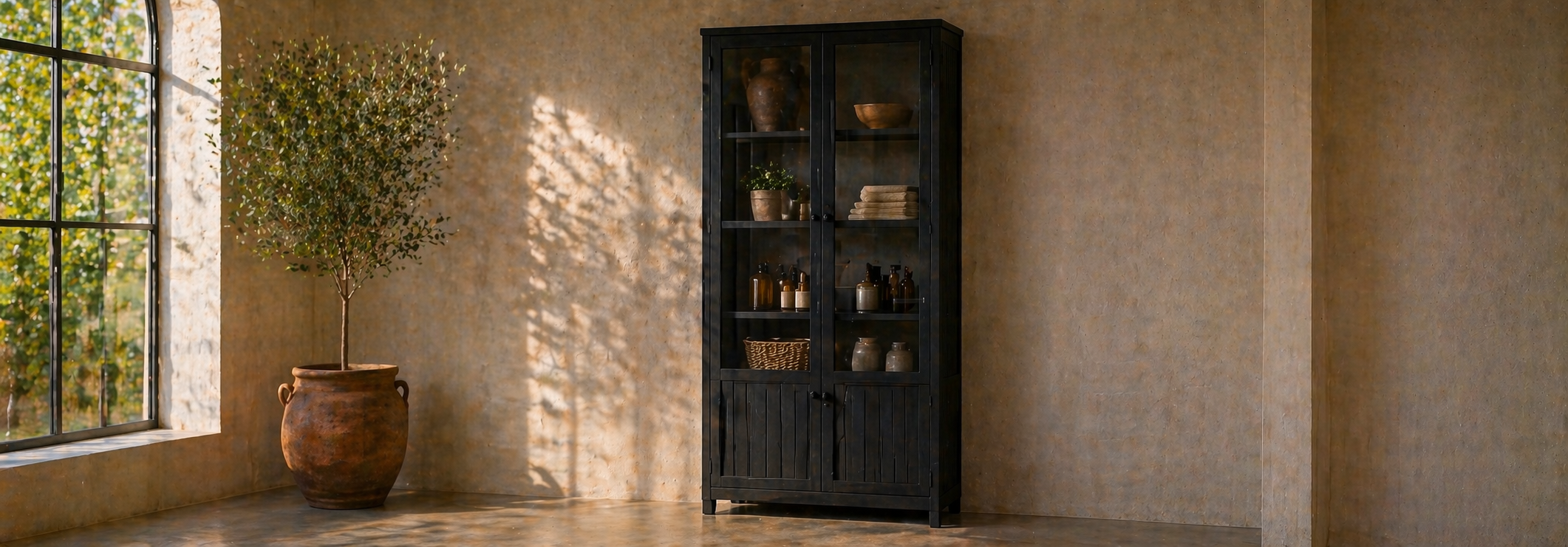 Mobile con ante vetrate progettato per esporre oggetti mantenendo ordine e protezione