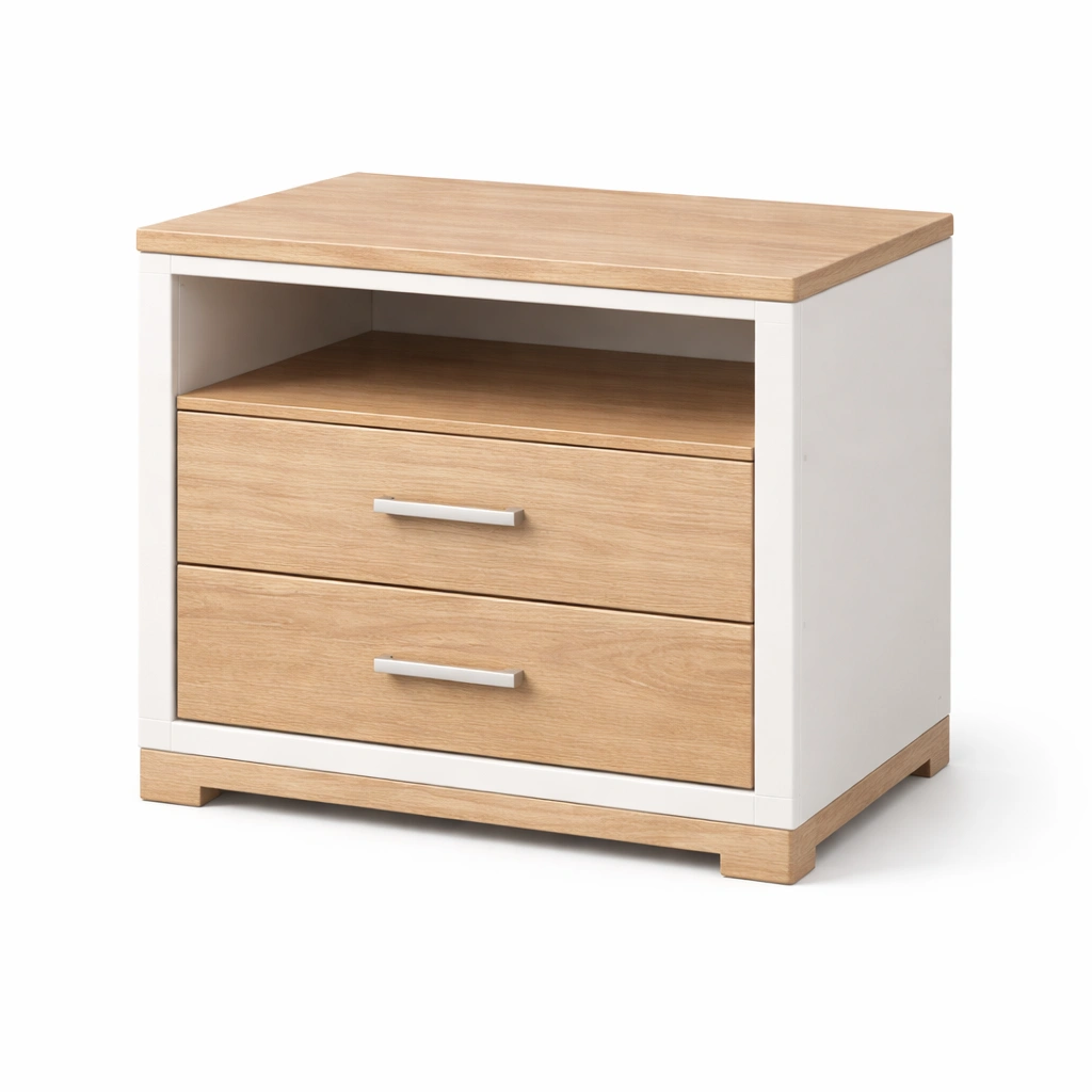 Comodino in mdf e legno con cassetti bianco rovere