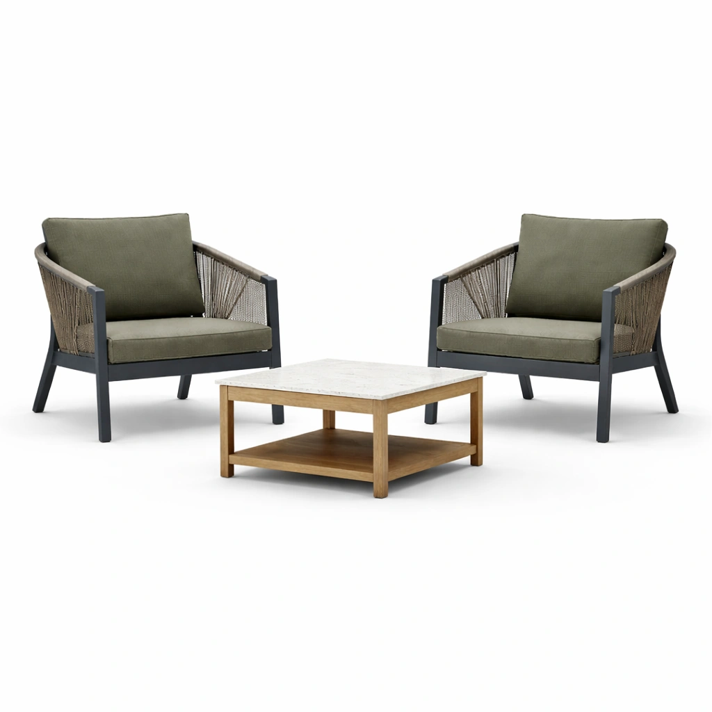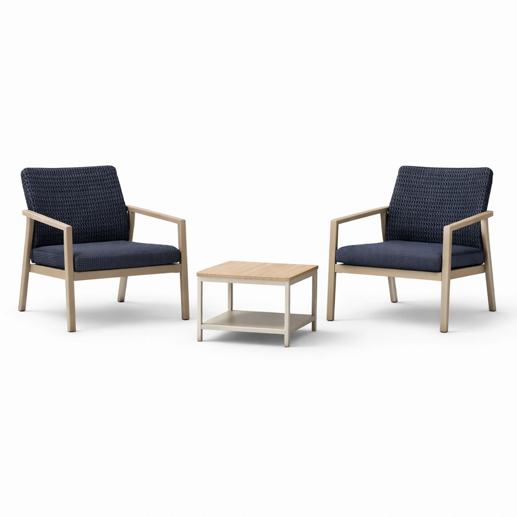 Set da giardino con poltrone in alluminio e tavolino in legno