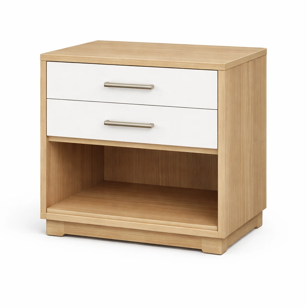 Materiale: Struttura in legno con rivestimento in MDF, frontali dei cassetti in MDF verniciato bianco.